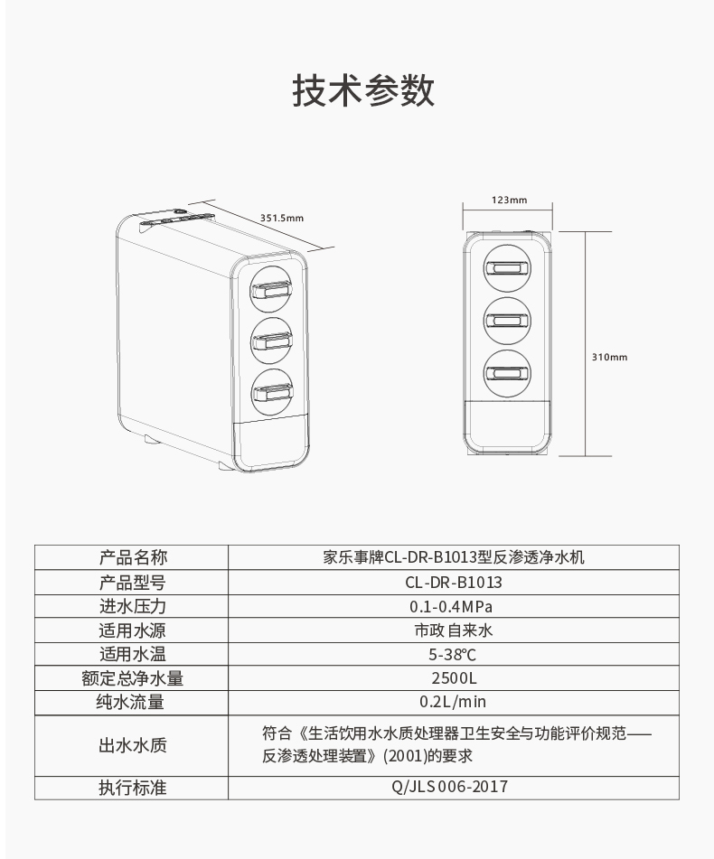 产品尺寸:351.5*123*310mm适用水质:市政自来水